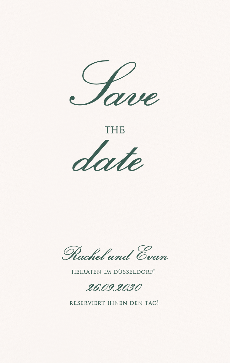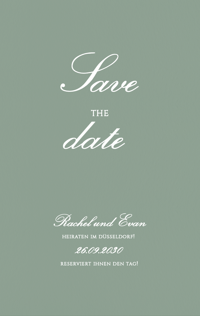 Bereiten Sie Ihren besonderen Tag stilvoll vor! Unsere virtuellen Save The Date Karten sind so gestaltet, dass sie Ihr Hochzeitsdatum elegant und unvergesslich ankündigen. Stellen Sie sicher, dass Ihre Lieben dieses außergewöhnliche Datum jetzt reservieren, mit unseren einfach zu sendenden und zu teilenden Online-Einladungen.