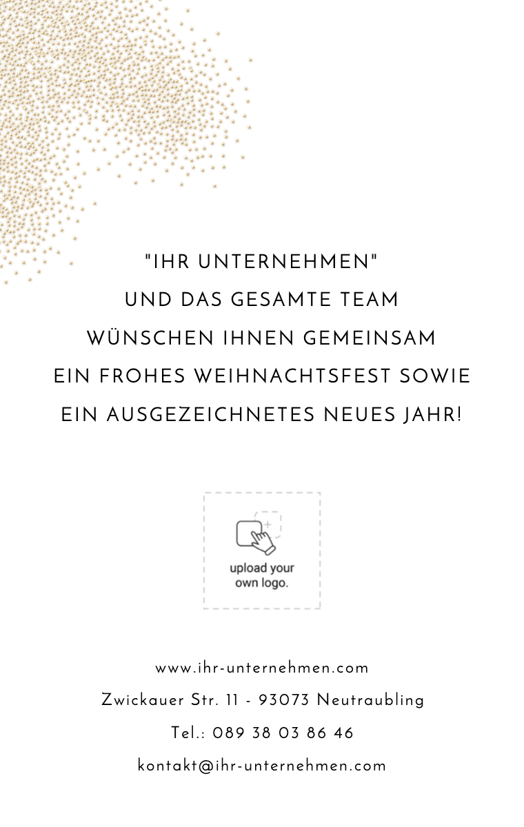 Stärken Sie Ihre Geschäftsbeziehungen mit unseren eleganten und personalisierten virtuellen Grußkarten. Wünschen Sie Ihren Kunden und Partnern ein erfolgreiches Jahr mit herzlichen Nachrichten und professionellen Designs. Zeigen Sie Ihre Wertschätzung und heben Sie sich mit Klasse ab, mit unseren Online-Grußkarten.