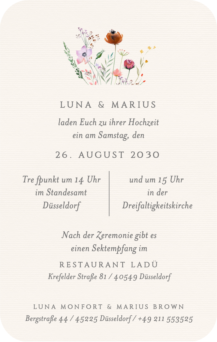 Bereiten Sie Ihren besonderen Tag stilvoll vor! Unsere virtuellen Karten sind so gestaltet, dass sie Ihr Hochzeitsdatum elegant und unvergesslich ankündigen. Stellen Sie sicher, dass Ihre Lieben dieses außergewöhnliche Datum jetzt reservieren, mit unseren einfach zu sendenden und zu teilenden Online-Einladungen.