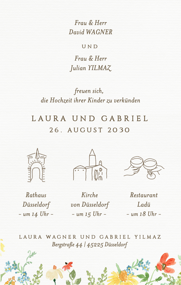Bereiten Sie Ihren besonderen Tag stilvoll vor! Unsere virtuellen Karten sind so gestaltet, dass sie Ihr Hochzeitsdatum elegant und unvergesslich ankündigen. Stellen Sie sicher, dass Ihre Lieben dieses außergewöhnliche Datum jetzt reservieren, mit unseren einfach zu sendenden und zu teilenden Online-Einladungen.