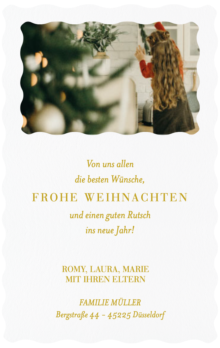 Verschicken Sie digitale Weihnachtskarten und persönliche Grüße an Ihre Liebsten, um die festliche Stimmung zu verbreiten. Gestalten Sie individuelle Botschaften, fügen Sie Fotos hinzu und senden Sie Ihre Wünsche direkt an Freunde und Familie – ganz gleich, wo sie sind. Erfüllen Sie ihre Postfächer mit Freude durch Weihnachtskarten, die Sie per E-Mail, SMS oder als Nachricht teilen können.