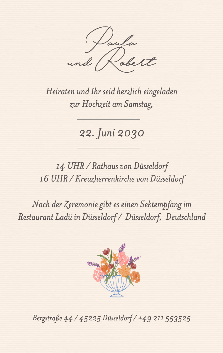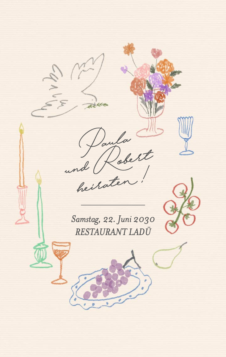 Ergänzen Sie Ihre digitalen Einladungen mit maßgeschneiderter Papeterie, die perfekt zu Ihrem gewählten Design passt und eine stimmige und unvergessliche Ästhetik garantiert.