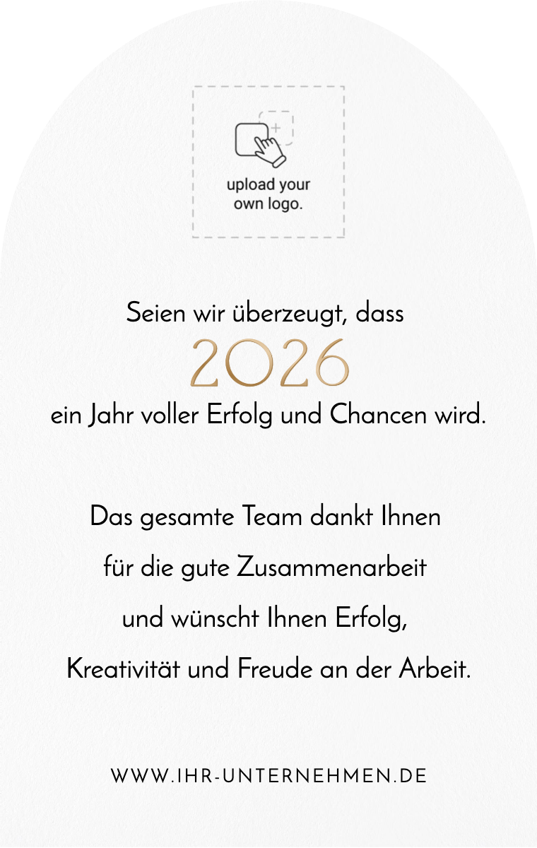 Stärken Sie Ihre Geschäftsbeziehungen mit unseren eleganten und personalisierten virtuellen Grußkarten. Wünschen Sie Ihren Kunden und Partnern ein erfolgreiches Jahr mit herzlichen Nachrichten und professionellen Designs. Zeigen Sie Ihre Wertschätzung und heben Sie sich mit Klasse ab, mit unseren Online-Grußkarten.