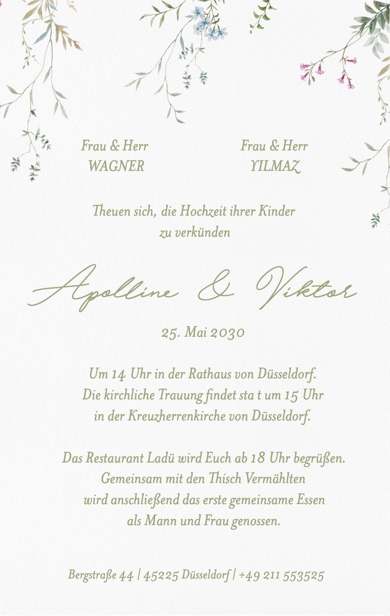 Bereiten Sie Ihren besonderen Tag stilvoll vor! Unsere virtuellen Karten sind so gestaltet, dass sie Ihr Hochzeitsdatum elegant und unvergesslich ankündigen. Stellen Sie sicher, dass Ihre Lieben dieses außergewöhnliche Datum jetzt reservieren, mit unseren einfach zu sendenden und zu teilenden Online-Einladungen.