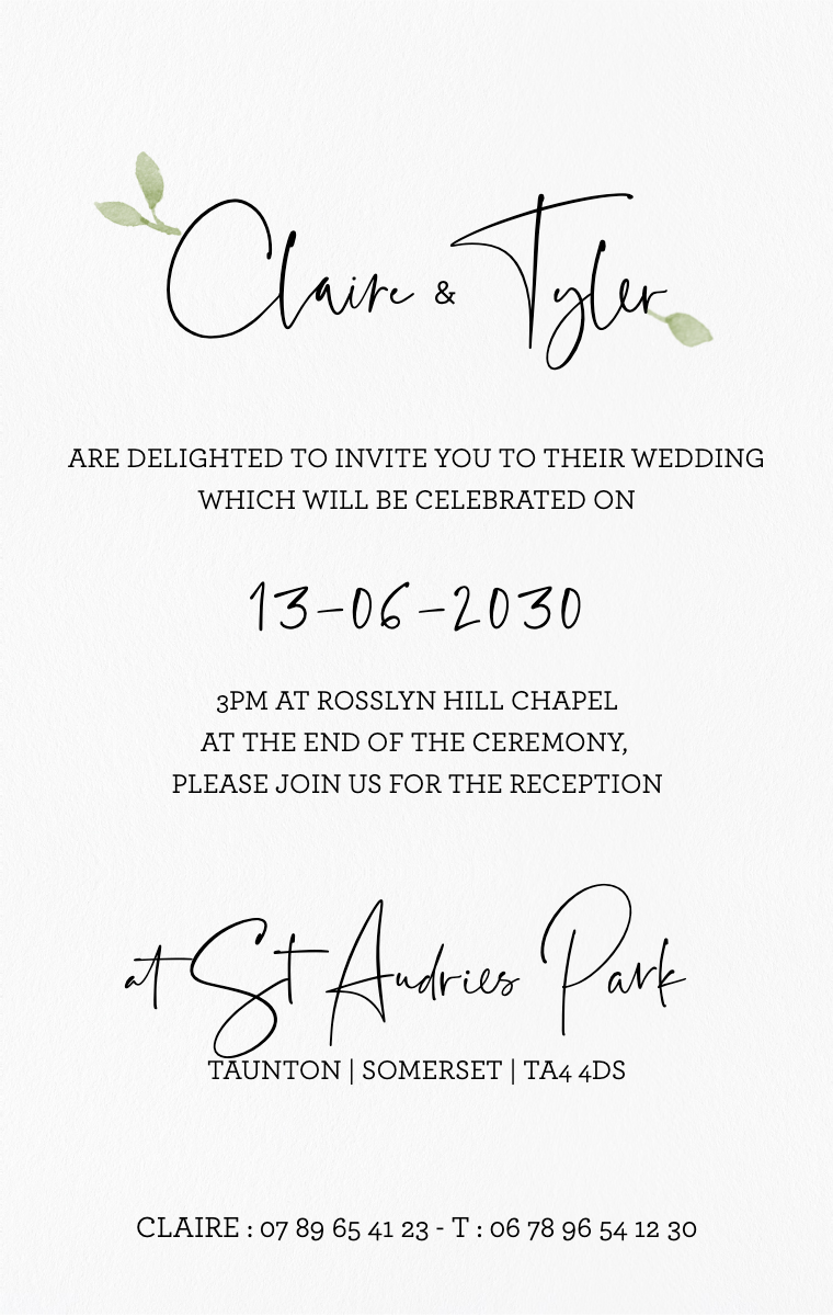 Prepare your special day with style! Our virtual cards are designed to announce your wedding date in an elegant and memorable way. Make sure your loved ones reserve this exceptional date now with our easy-to-send and share online invitations.
