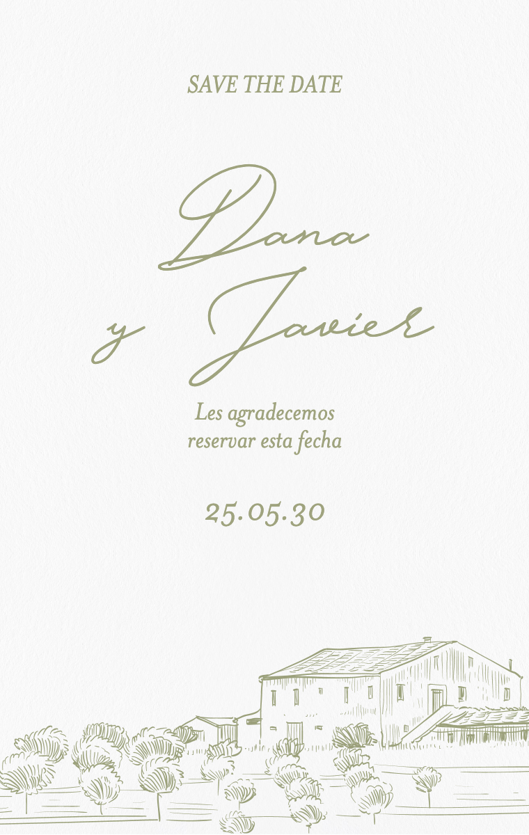 ¡Prepara tu día especial con estilo! Nuestras tarjetas virtuales Save The Date están diseñadas para anunciar la fecha de tu boda de manera elegante e inolvidable. Asegúrate de que tus seres queridos reserven esta fecha excepcional ahora con nuestras invitaciones en línea fáciles de enviar y compartir.