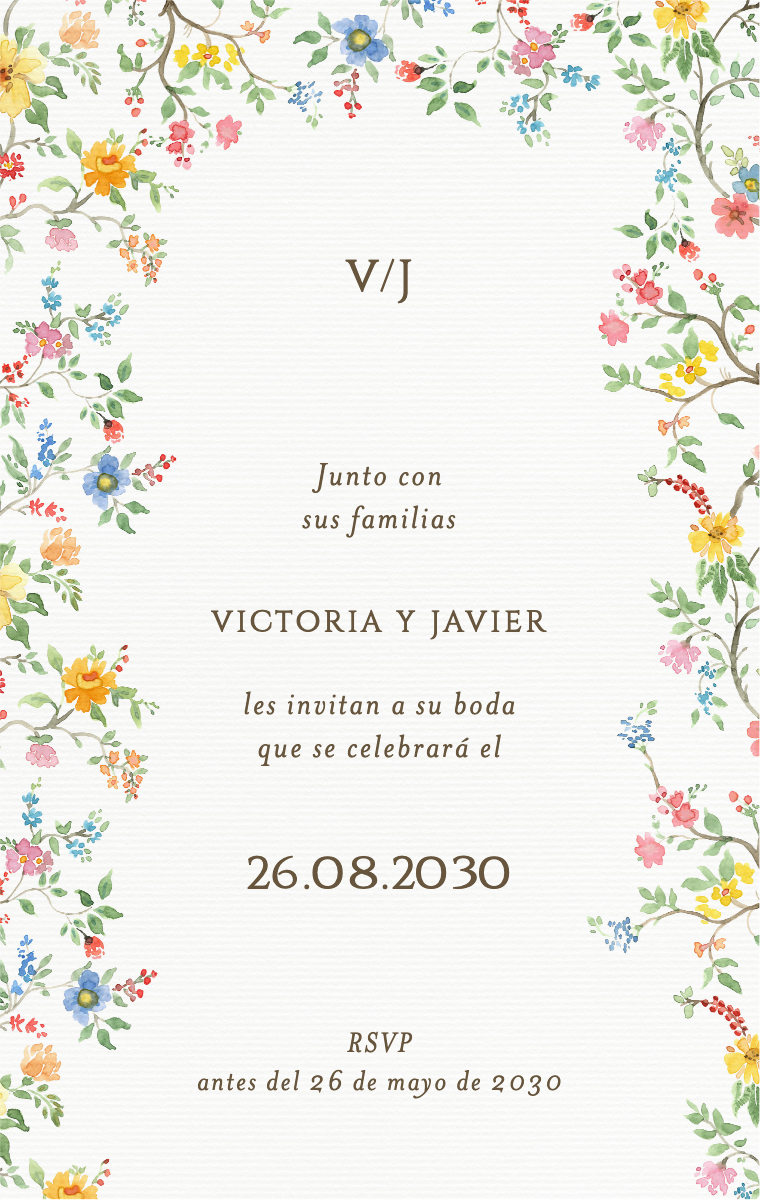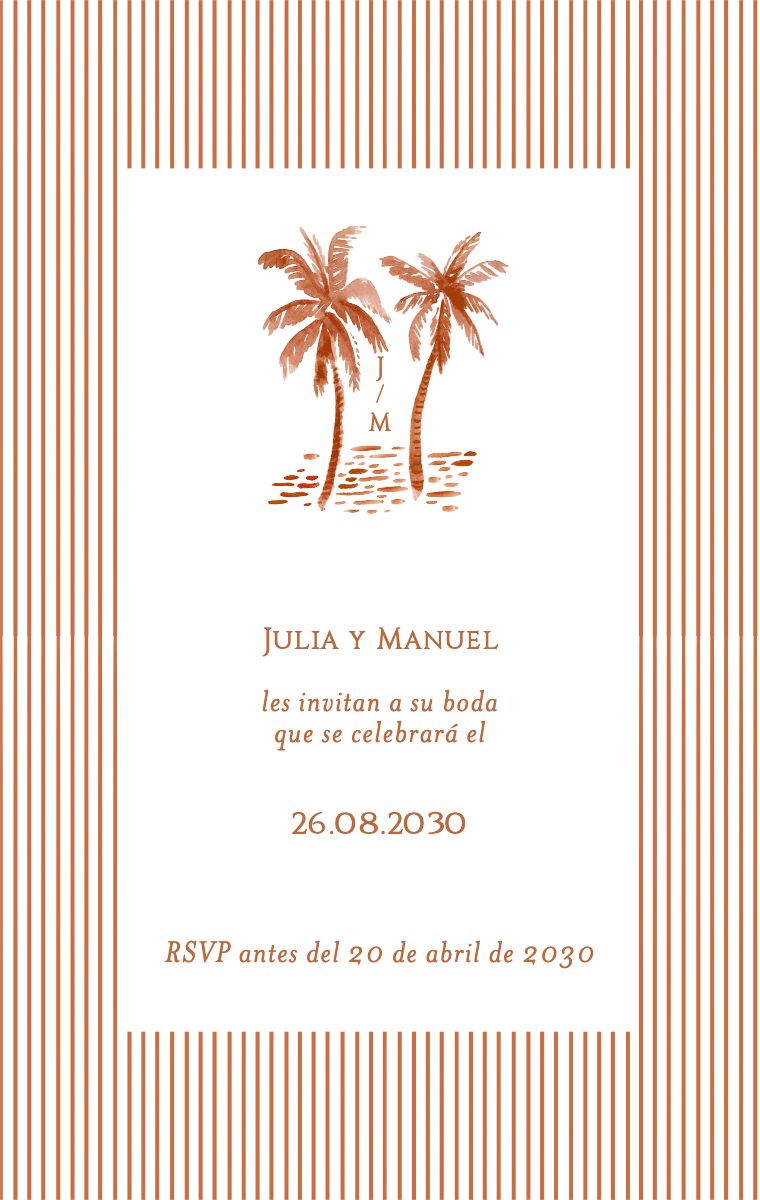 ¡Prepara tu día especial con estilo! Nuestras tarjetas virtuales están diseñadas para anunciar la fecha de tu boda de manera elegante e inolvidable. Asegúrate de que tus seres queridos reserven esta fecha excepcional ahora con nuestras invitaciones en línea fáciles de enviar y compartir.