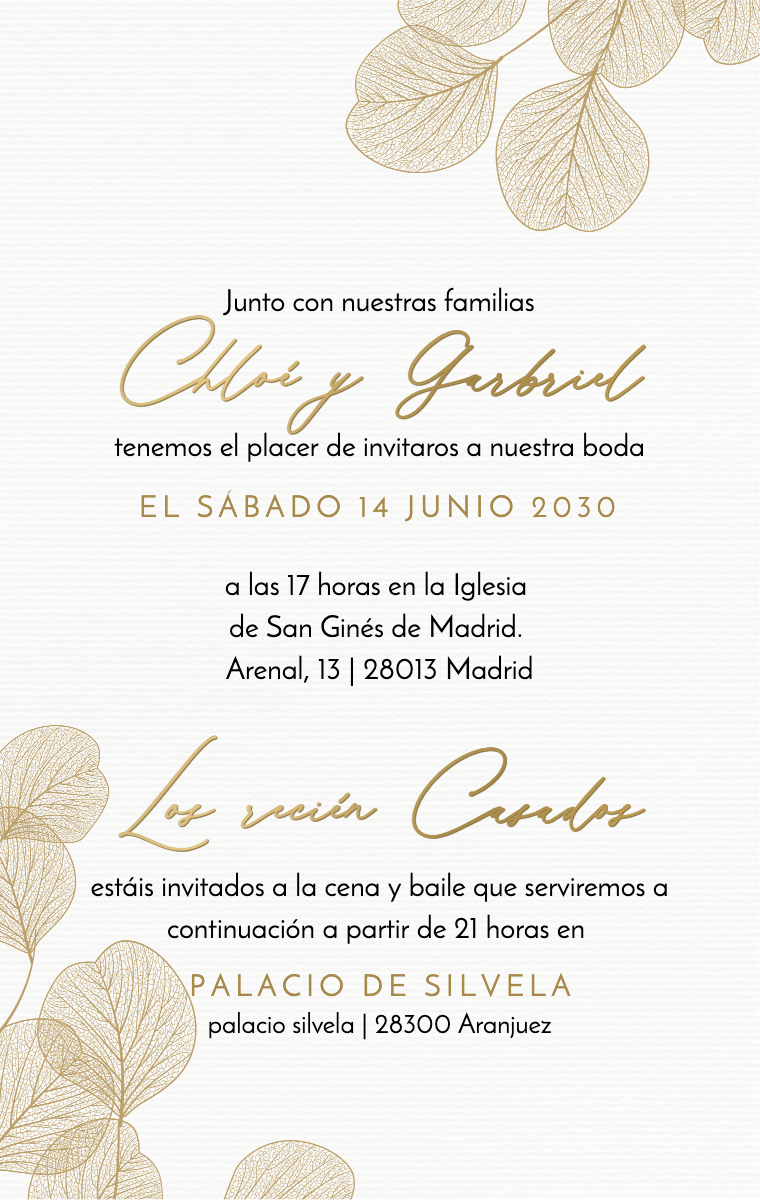 ¡Prepara tu día especial con estilo! Nuestras tarjetas virtuales están diseñadas para anunciar la fecha de tu boda de manera elegante e inolvidable. Asegúrate de que tus seres queridos reserven esta fecha excepcional ahora con nuestras invitaciones en línea fáciles de enviar y compartir.