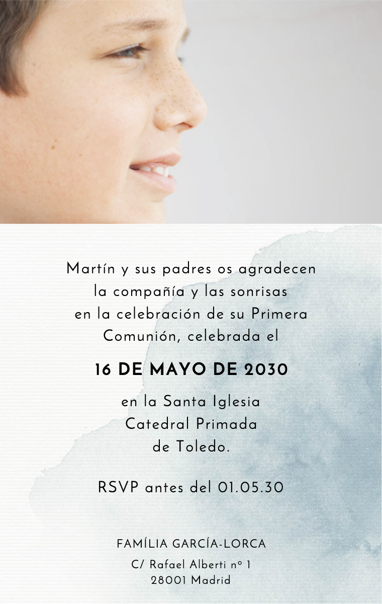 ¡Prepara esta celebración especial con estilo! Nuestras invitaciones virtuales de comunión están diseñadas para anunciar la fecha del bautizo de tu hijo de manera elegante e inolvidable. Asegúrate de que tus seres queridos reserven este momento único ahora con nuestras invitaciones en línea, fáciles de enviar y compartir.