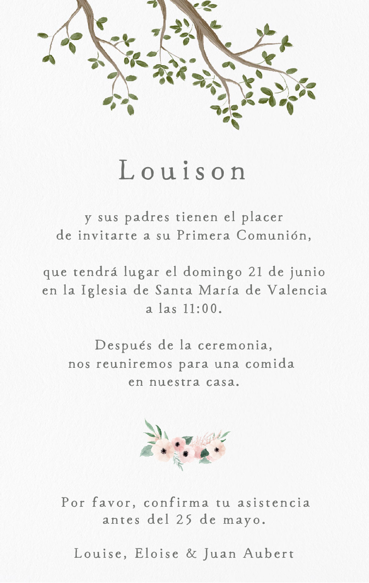 ¡Prepara esta celebración especial con estilo! Nuestras invitaciones virtuales de comunión están diseñadas para anunciar la fecha del bautizo de tu hijo de manera elegante e inolvidable. Asegúrate de que tus seres queridos reserven este momento único ahora con nuestras invitaciones en línea, fáciles de enviar y compartir.