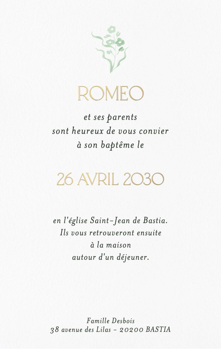 Préparez votre journée spéciale avec style ! Nos cartes d'invitation virtuelles sont conçues pour annoncer la date de son baptême de manière élégante et mémorable. Assurez-vous que vos proches réservent cette date exceptionnelle dès maintenant avec nos invitations en ligne faciles à envoyer et à partager.