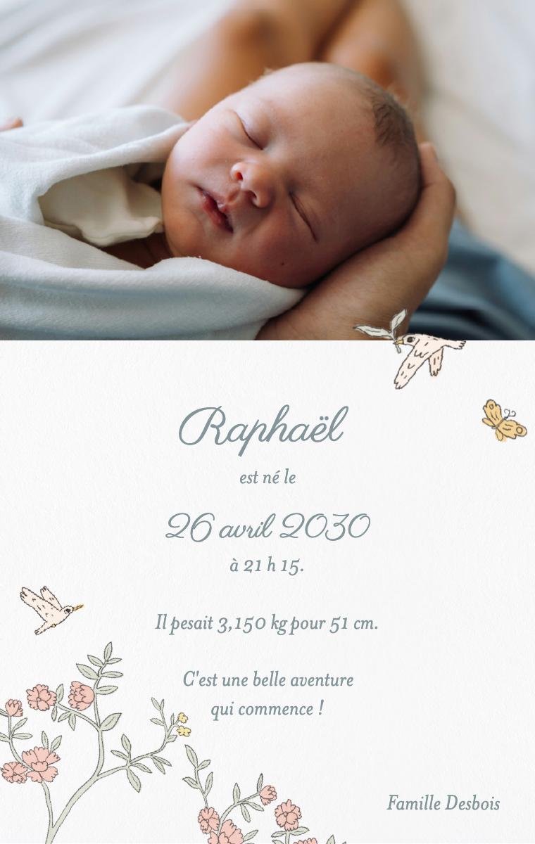 Nos faire-part digitaux sont pensés pour partager cette grande nouvelle de façon élégante, douce et mémorable. Faciles à envoyer et à partager, ils touchent le cœur de vos proches en un instant.