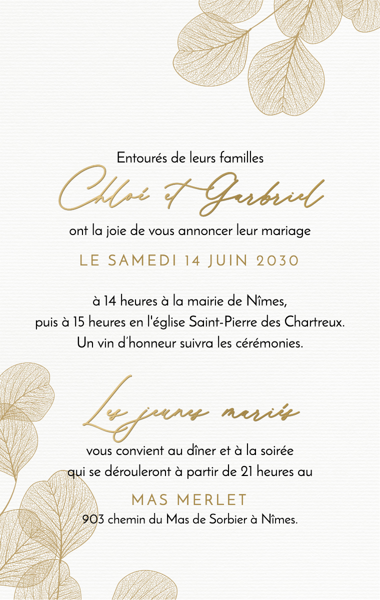 Préparez votre journée spéciale avec style ! Nos cartes virtuelles sont conçues pour annoncer la date de votre mariage de manière élégante et mémorable. Assurez-vous que vos proches réservent cette date exceptionnelle dès maintenant avec nos invitations en ligne faciles à envoyer et à partager.