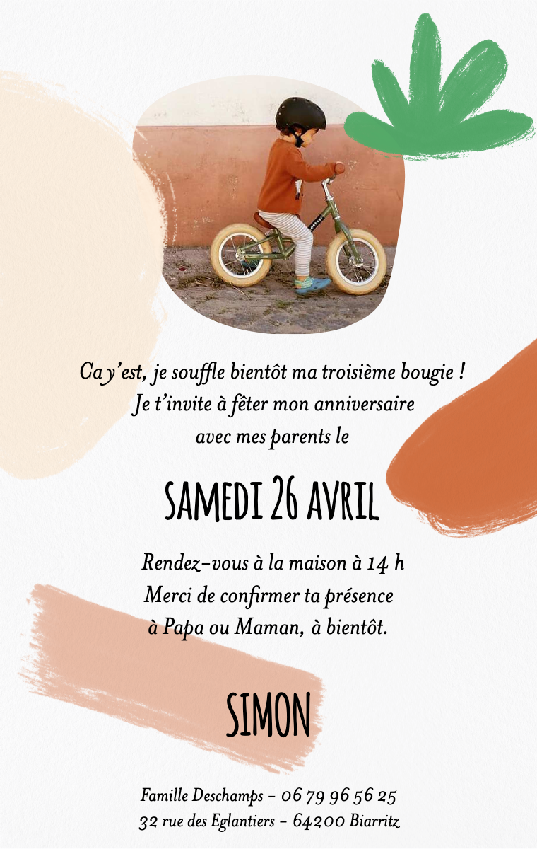 Faites de l'anniversaire de votre enfant un moment magique avec nos invitations virtuelles personnalisées. Des designs colorés et amusants qui donneront le ton pour une fête inoubliable. Invitez vos amis à célébrer avec style et enthousiasme grâce à nos cartes d'invitation en ligne faciles à créer et à distribuer.