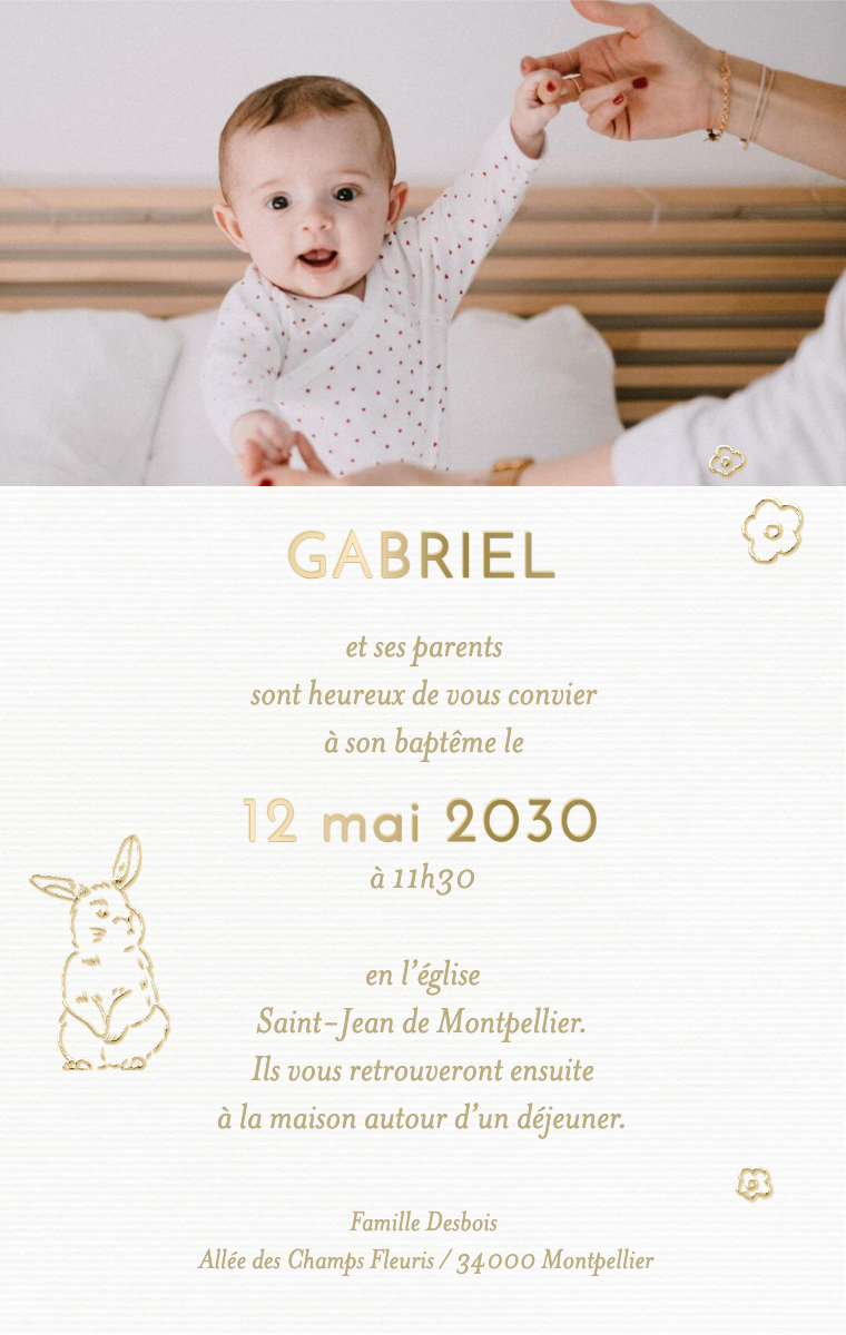 Préparez votre journée spéciale avec style ! Nos cartes d'invitation virtuelles sont conçues pour annoncer la date de son baptême de manière élégante et mémorable. Assurez-vous que vos proches réservent cette date exceptionnelle dès maintenant avec nos invitations en ligne faciles à envoyer et à partager.