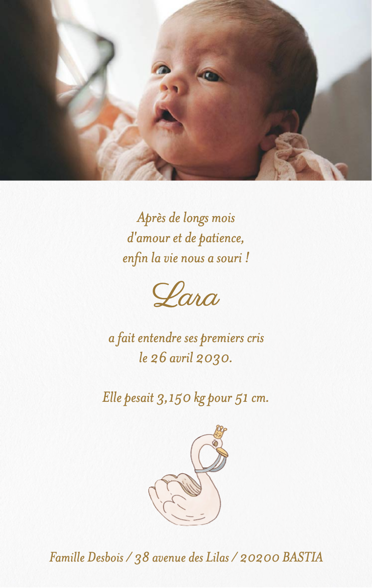 Nos faire-part digitaux sont pensés pour partager cette grande nouvelle de façon élégante, douce et mémorable. Faciles à envoyer et à partager, ils touchent le cœur de vos proches en un instant.