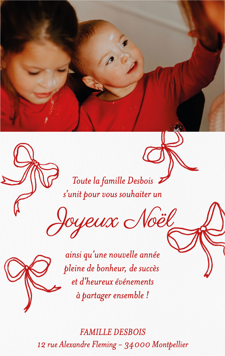 Envoyez des cartes de Noël digitales et des vœux personnalisés à vos proches pour célébrer la magie des fêtes. Personnalisez vos messages, ajoutez des photos et partagez vos vœux instantanément avec vos amis et votre famille, où qu'ils se trouvent. Partagez la joie des fêtes avec des cartes de Noël que vous pouvez envoyer par email, SMS ou partager.