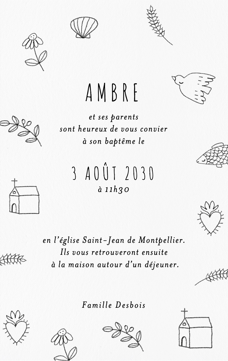 Préparez votre journée spéciale avec style ! Nos cartes d'invitation virtuelles sont conçues pour annoncer la date de son baptême de manière élégante et mémorable. Assurez-vous que vos proches réservent cette date exceptionnelle dès maintenant avec nos invitations en ligne faciles à envoyer et à partager.