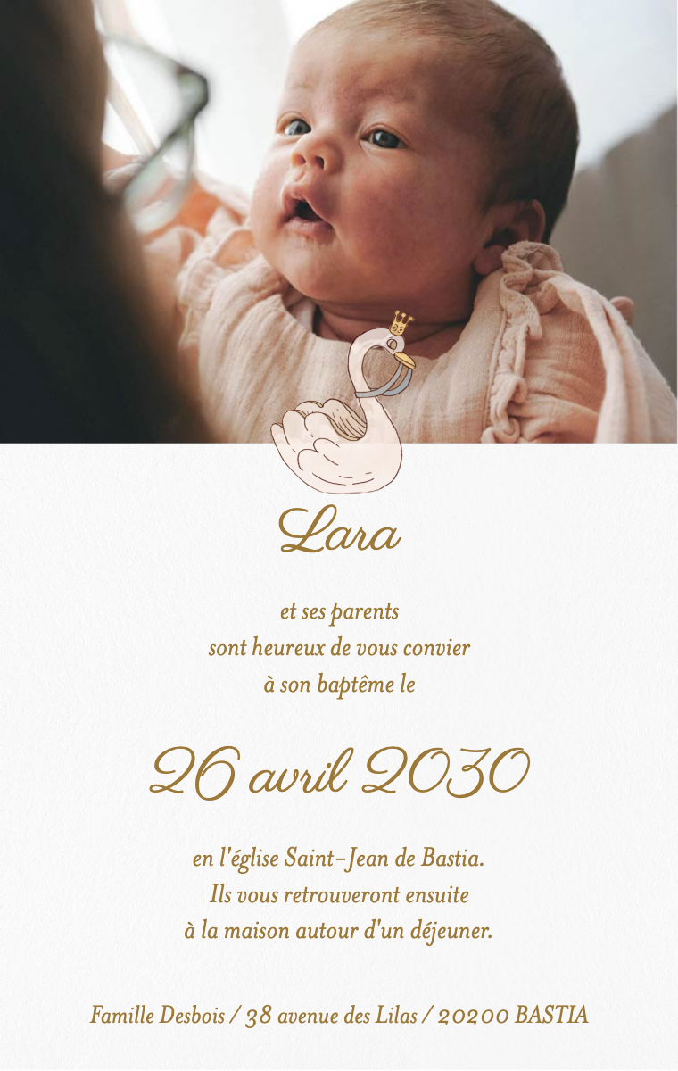 Préparez votre journée spéciale avec style ! Nos cartes d'invitation virtuelles sont conçues pour annoncer la date de son baptême de manière élégante et mémorable. Assurez-vous que vos proches réservent cette date exceptionnelle dès maintenant avec nos invitations en ligne faciles à envoyer et à partager.