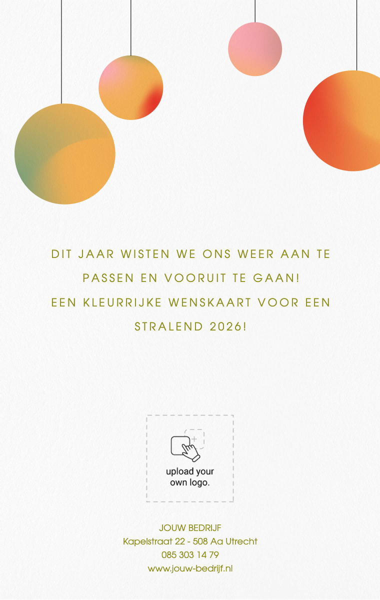 Versterk uw zakelijke relaties met onze elegante en gepersonaliseerde virtuele wenskaarten. Wens uw klanten en partners een voorspoedig jaar met warme berichten en professionele ontwerpen. Toon uw waardering en val op met klasse met onze online wenskaarten.