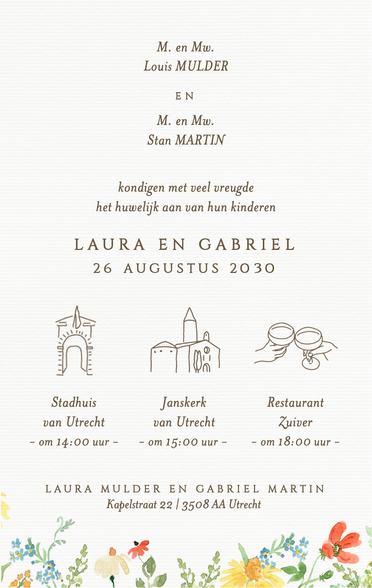 Bereid uw speciale dag stijlvol voor! Onze virtuele kaarten zijn ontworpen om uw trouwdatum elegant en gedenkwaardig aan te kondigen. Zorg ervoor dat uw dierbaren deze bijzondere datum nu reserveren met onze gemakkelijk te verzenden en te delen online uitnodigingen.