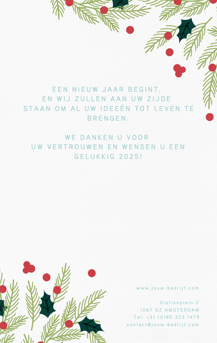 Versterk uw zakelijke relaties met onze elegante en gepersonaliseerde virtuele wenskaarten. Wens uw klanten en partners een voorspoedig jaar met warme berichten en professionele ontwerpen. Toon uw waardering en val op met klasse met onze online wenskaarten.