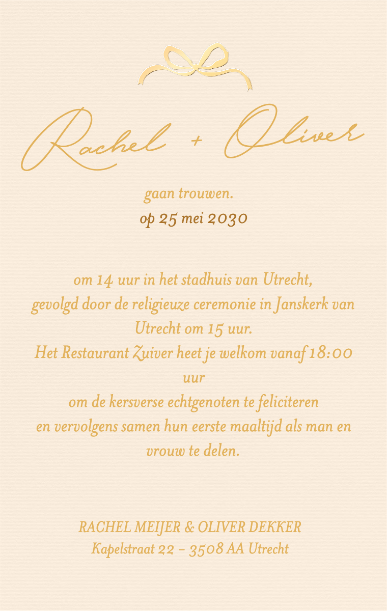 Bereid uw speciale dag stijlvol voor! Onze virtuele kaarten zijn ontworpen om uw trouwdatum elegant en gedenkwaardig aan te kondigen. Zorg ervoor dat uw dierbaren deze bijzondere datum nu reserveren met onze gemakkelijk te verzenden en te delen online uitnodigingen.